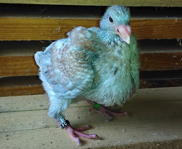 Dem amerikanischen Standard folgend ist es sicher ratsam, die Schenkelbefiederung im Auge zu behalten und züchterisch zu minimieren. Sie ist zur Zeit zwar bewertungstechnisch so unbedeutend wie ein weißer Rücken bei Blauen aber "Das kluge Kind sorgt vor!".